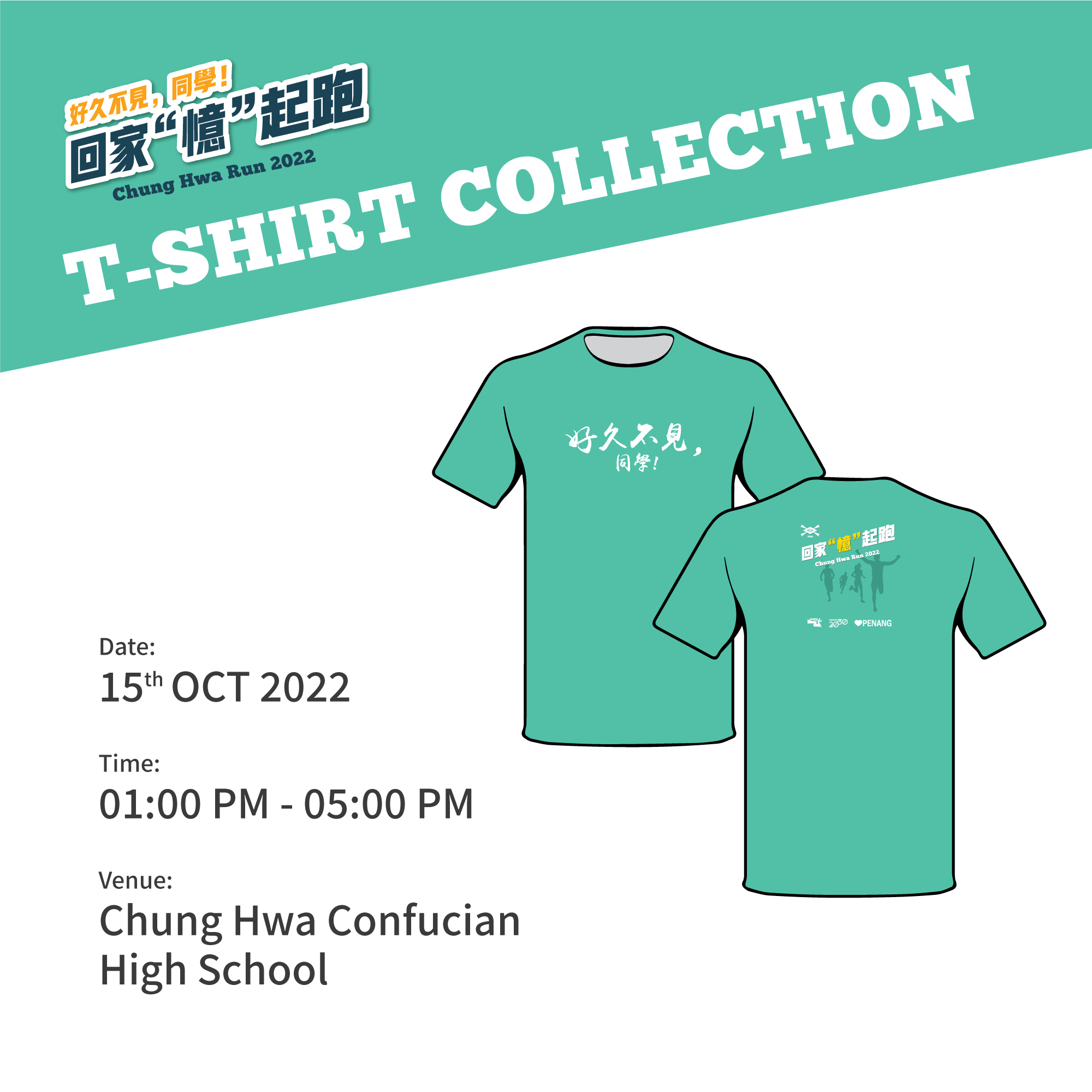中华的同学们,好久不见! 疫情偷走了我们的两年,难得风雨过后出现晴天,现在,“回家跑”又重新复办啦! 这是久别重逢的好机会,中华的兄弟姐妹们赶快来报名吧,让我们一起回到母校跑步话当年,更重要的是, 为学校筹集款项协助家境贫寒的学弟妹完成学业,一举多得呢!10月16日,我们中华中学见! Hi friends of CHCHS! The "Chung Hwa Run" is set to happen next month on October 16! The run is an excellent opportunity to reunite after a long absence due to the pandemic. So, let’s go back to our alma mater for an enjoyable fun run, and more importantly, to raise fund for our juniors from the B40 income group to complete their studies. See you at CHCHS on October 16th!