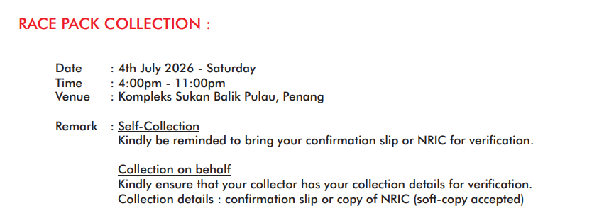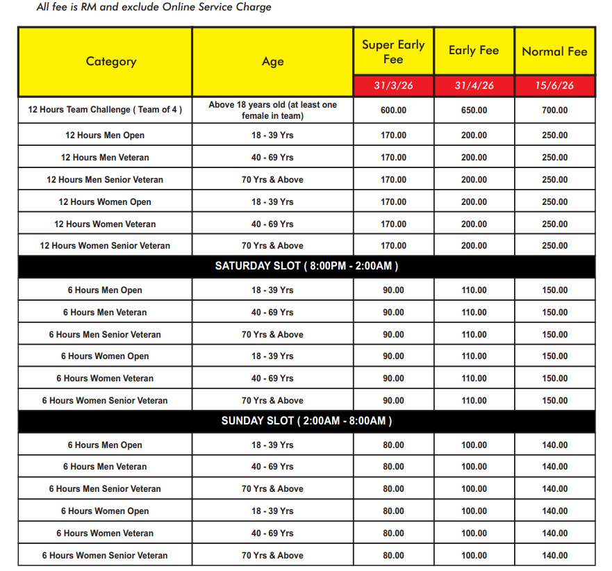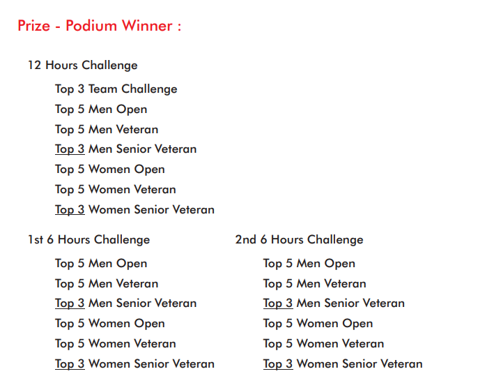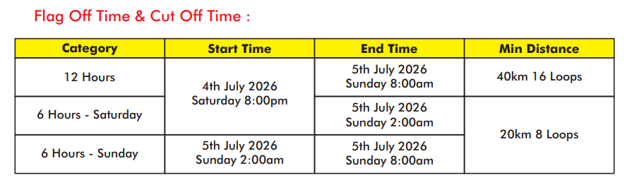 The organiser is not liable for any medical issues due to participants hiding their true medical conditions. IMPORTANT NOTICE : Participants are advised to read the following Important Notice, Terms & Conditions and Ofcial Rules carefully before the race. Participants are advised to solicit medical advice from doctor if they are in doubt of their health condition prior to taking part in the race.