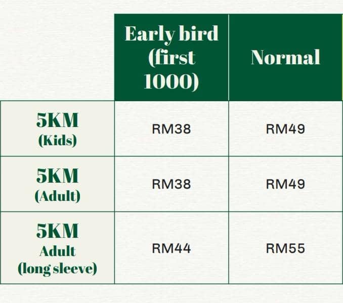- Kanak-kanak yang menyertai kategori 5KM Kid mesti diiringi oleh seorang dewasa yang juga menyertai larian ini. / Kids participate in 5KM category must be accompany by at least 1 adult that also participate in this run.