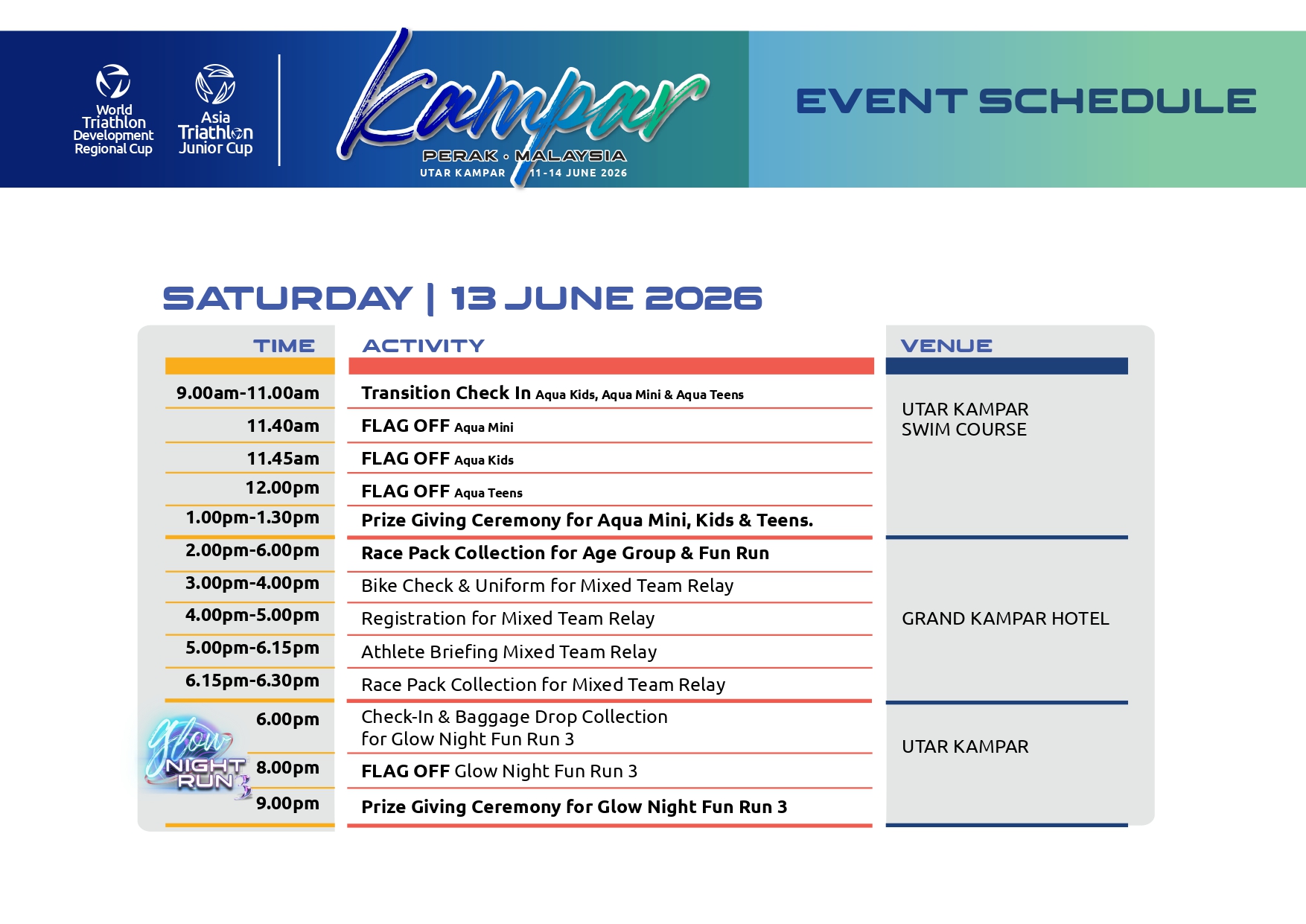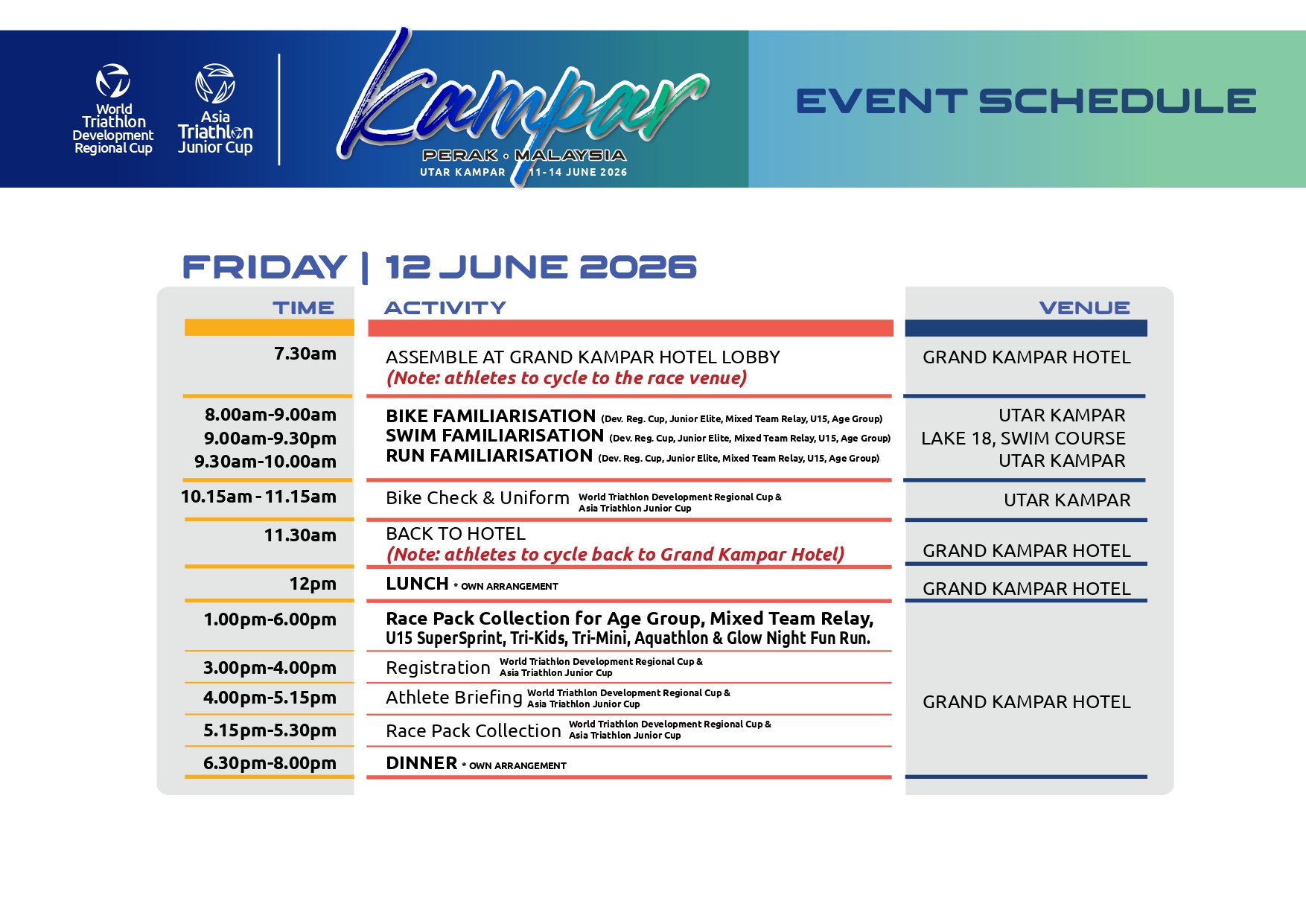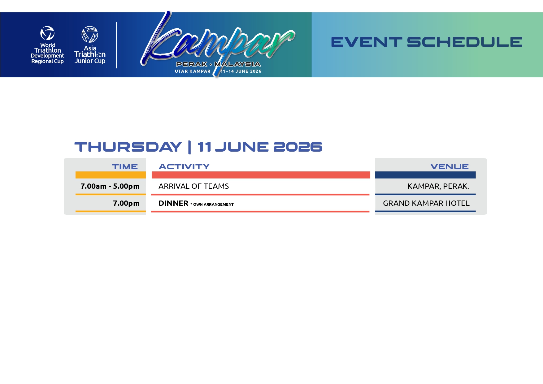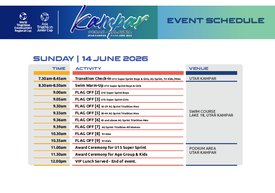 or Kuala Lumpur on 11th June 2026. Last day of race will be on 14th June 2026.