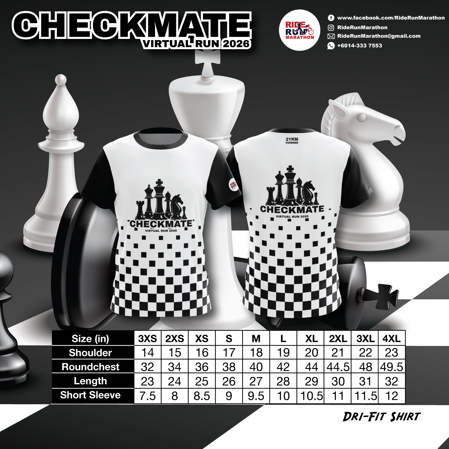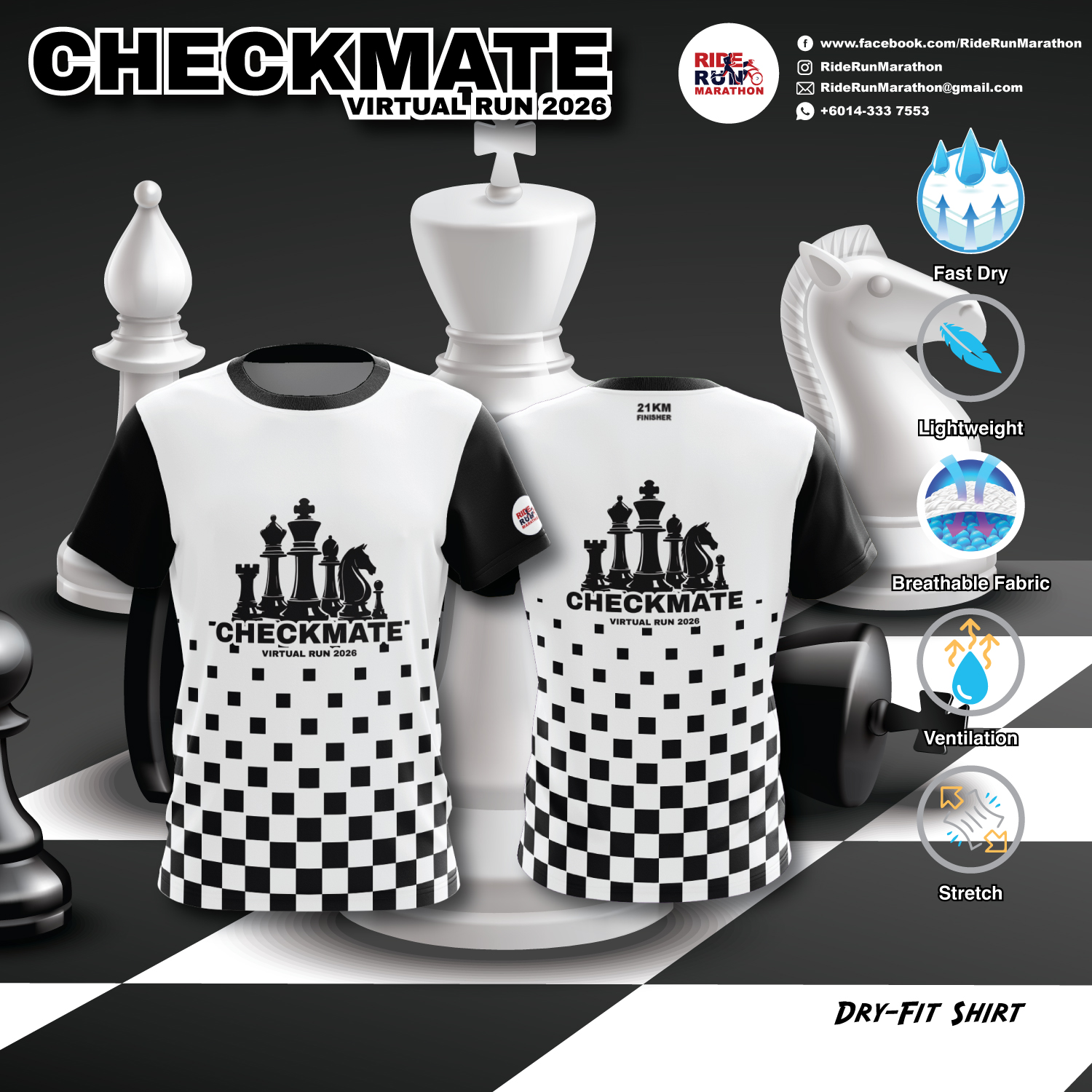 2) CheckMate Virtual Run 2026 Dri-fit Finisher Tshirt (Distance Printed)
