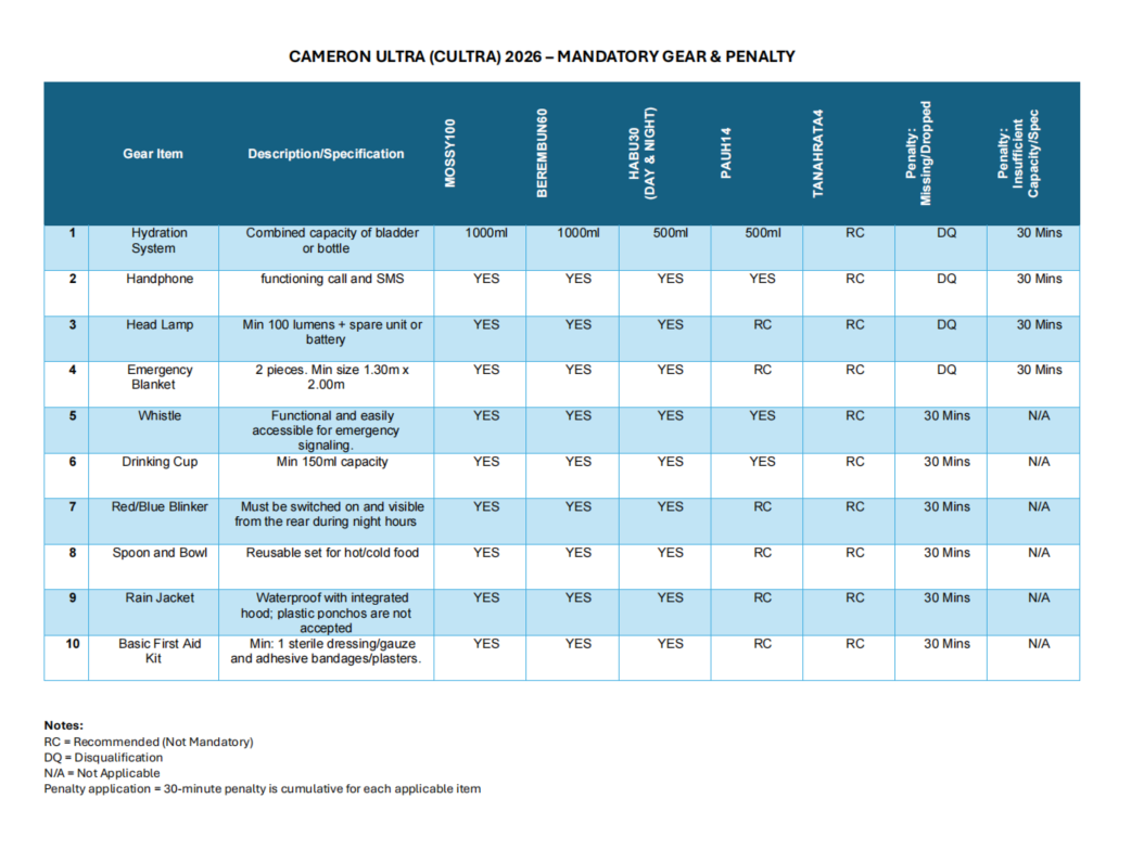 • No Muling: Participants must carry all of their own mandatory gear, food, and water