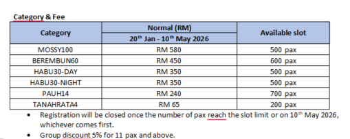 May 2026, subject to slot availability and an RM20 processing fee plus price