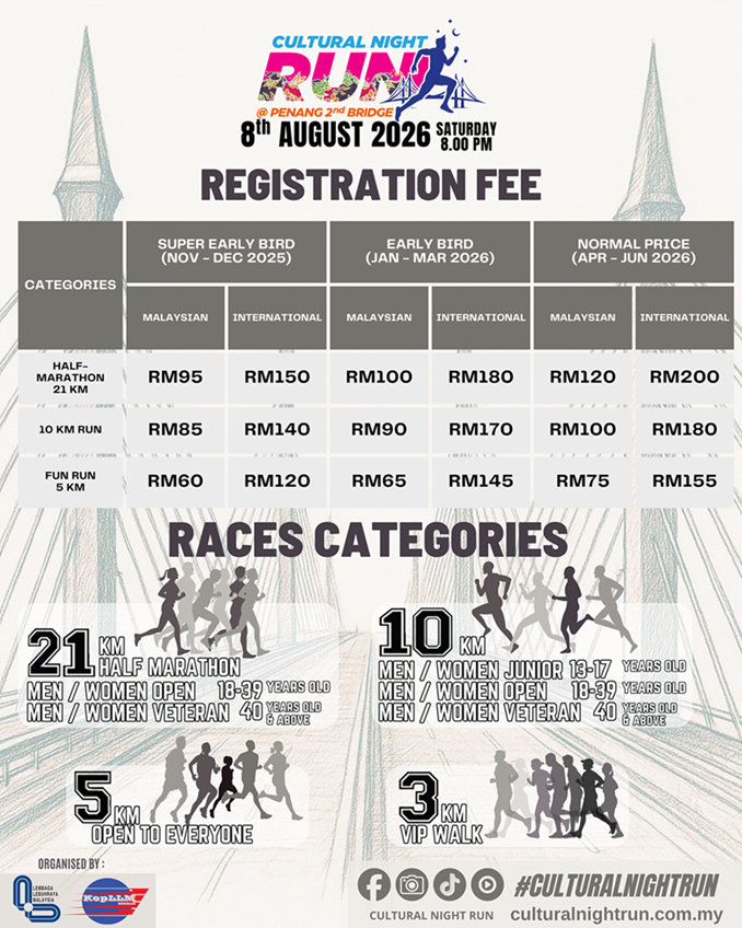 Cultural Night Run 2026 registration is now open and the closing date is on the 30 June 2026 or when all of the slots are filled.