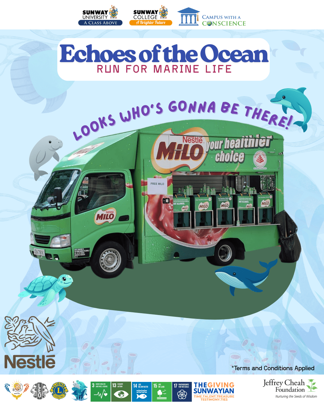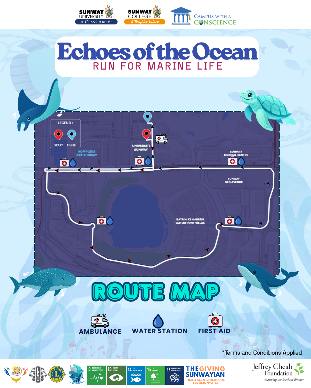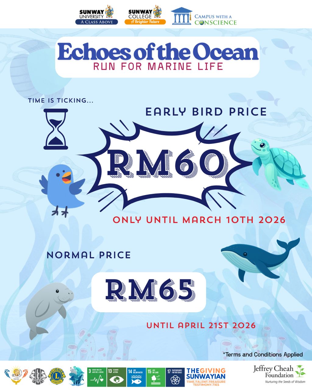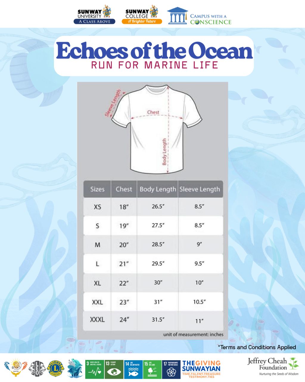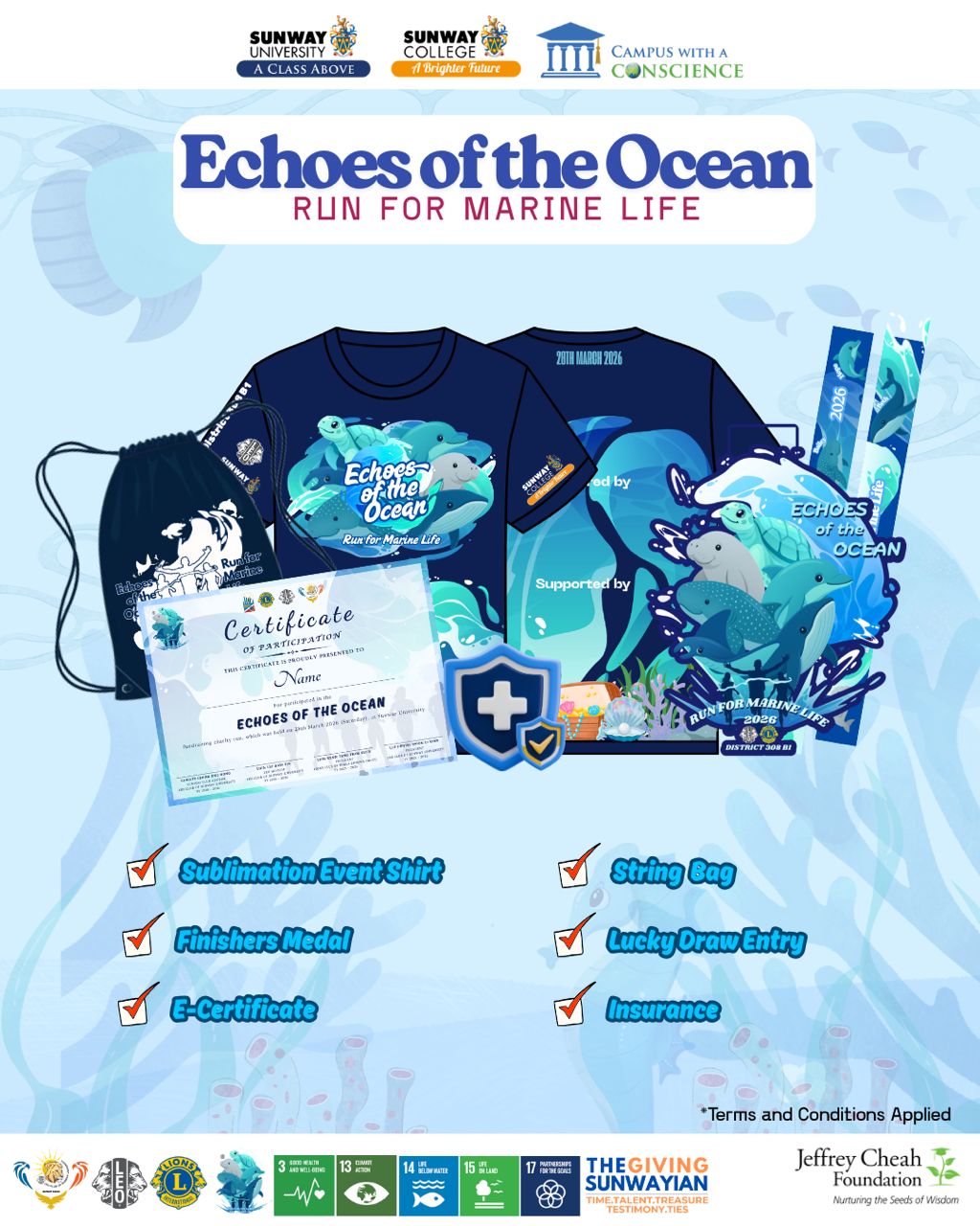 Echoes of the Ocean is a fundraising charity run dedicated to supporting marine conservation efforts through contributions to Lang Tengah Turtle Watch (PULIHARA), the Sea Turtle Research Unit (SEATRU) & MareCet. 70% of the proceeds will be divided among the three conservation groups and will directly benefit the protection and education of marine life around the Northeastern Region of Malaysia. 30% will be using for future club community projects