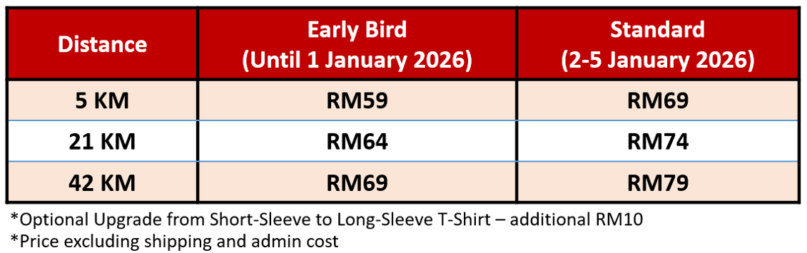 - Fire Horse Virtual Marathon 2026 Dry-fit Finisher T-shirt (Distance Printed) (Option to upgrade from short sleeve to long sleeve T-Shirt for all categories - add RM10)