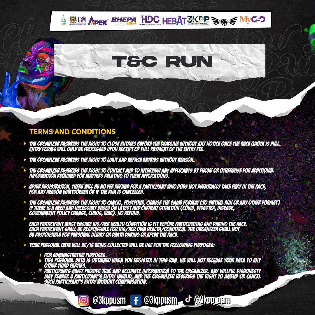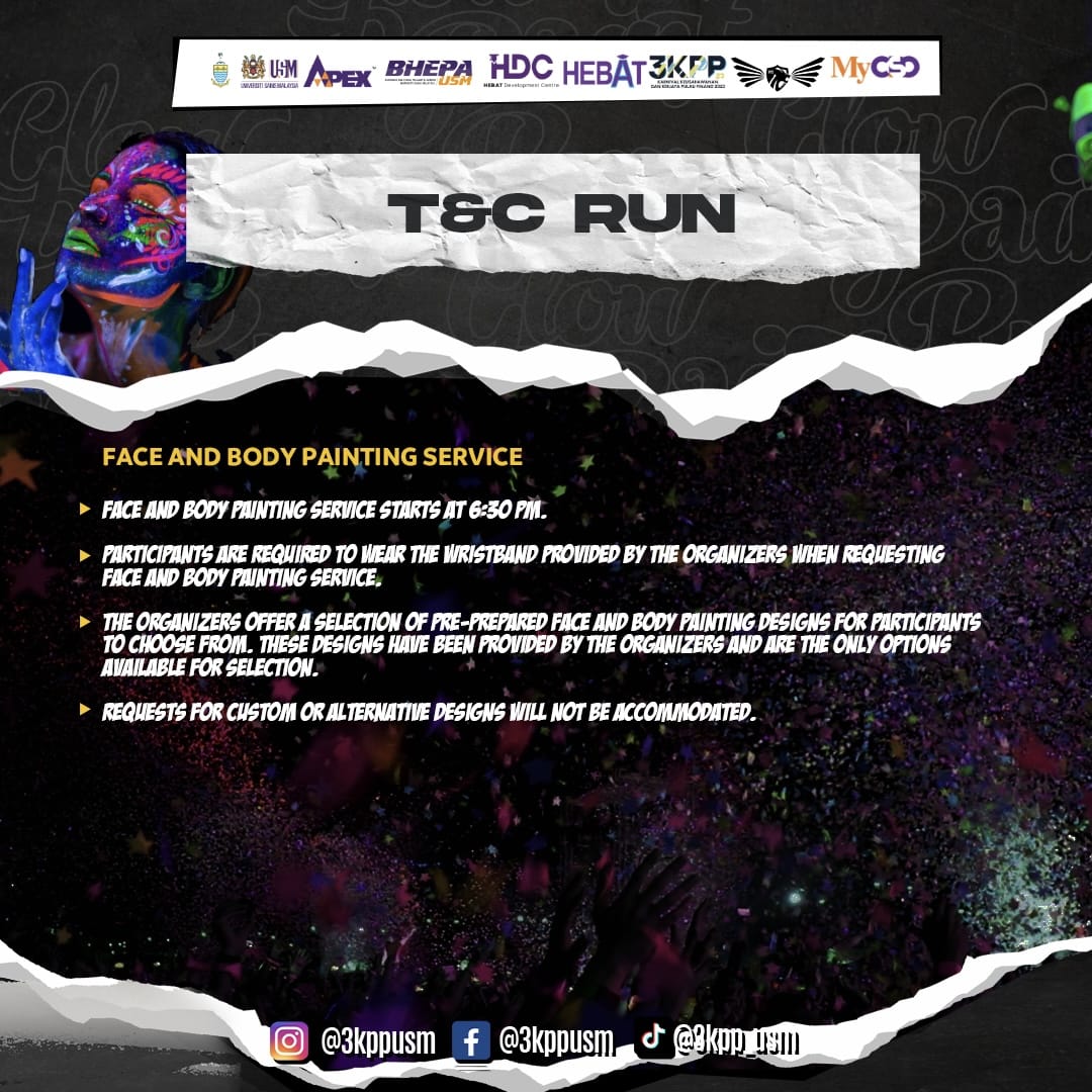 💥 3KPP23 is back with another amazing activity that is: Glow Paint Fun Run 🎨🏃🏻♂️. Lets brighten and light up the night with glow paint together with 3KPP23! ⭐️.