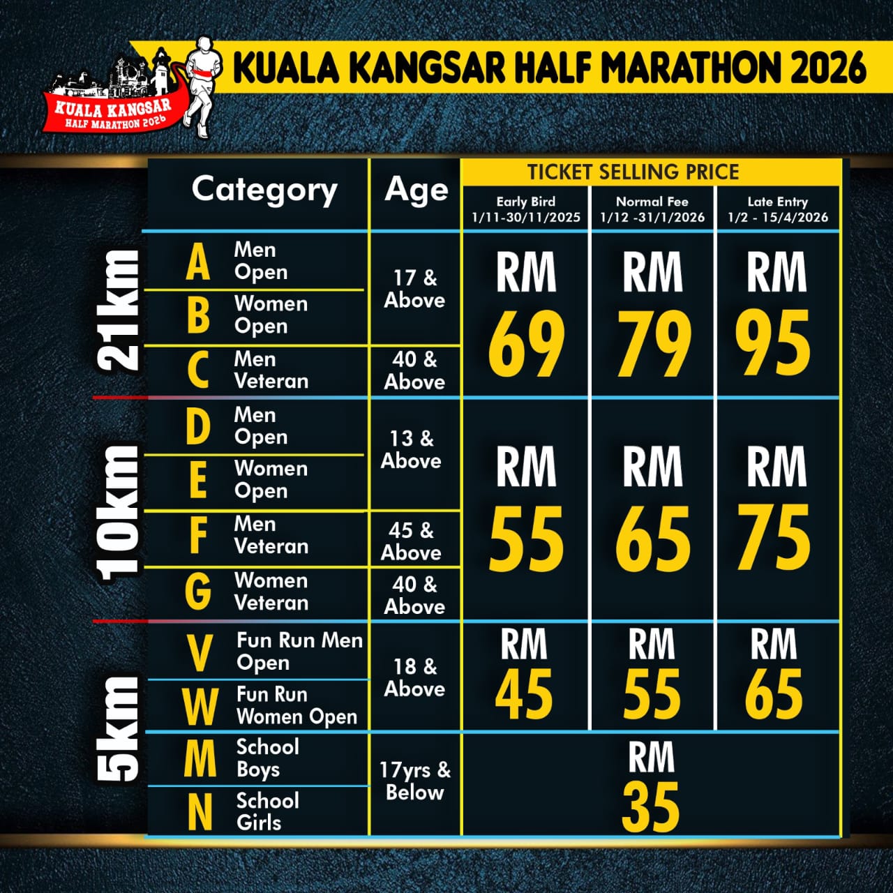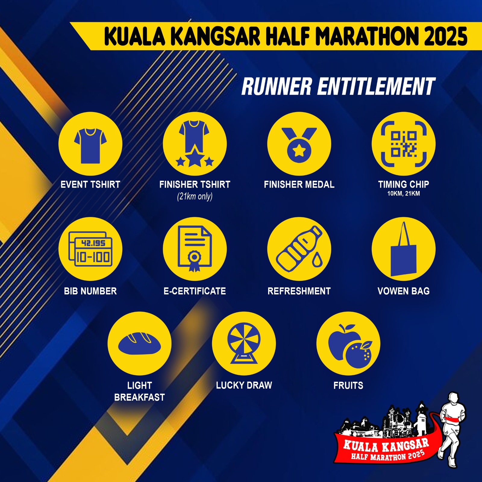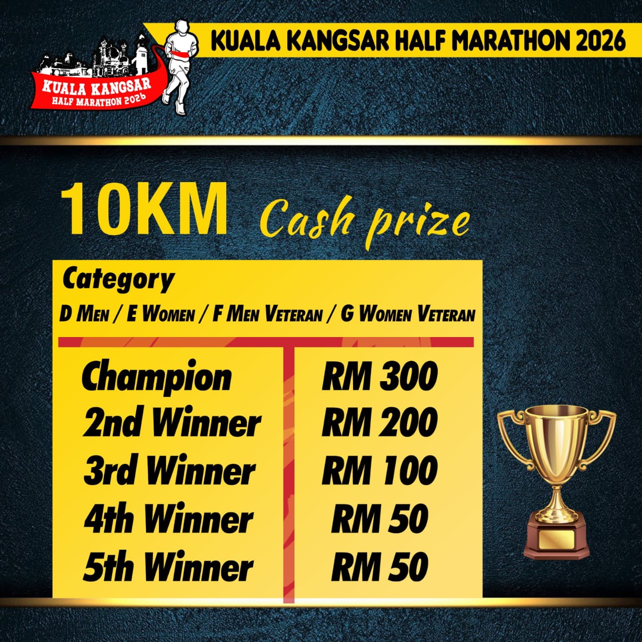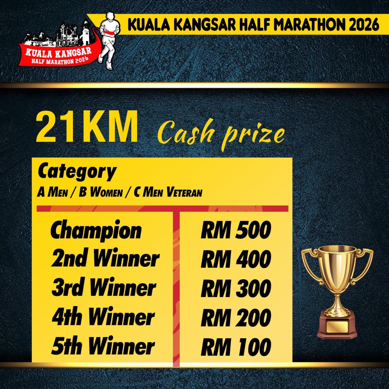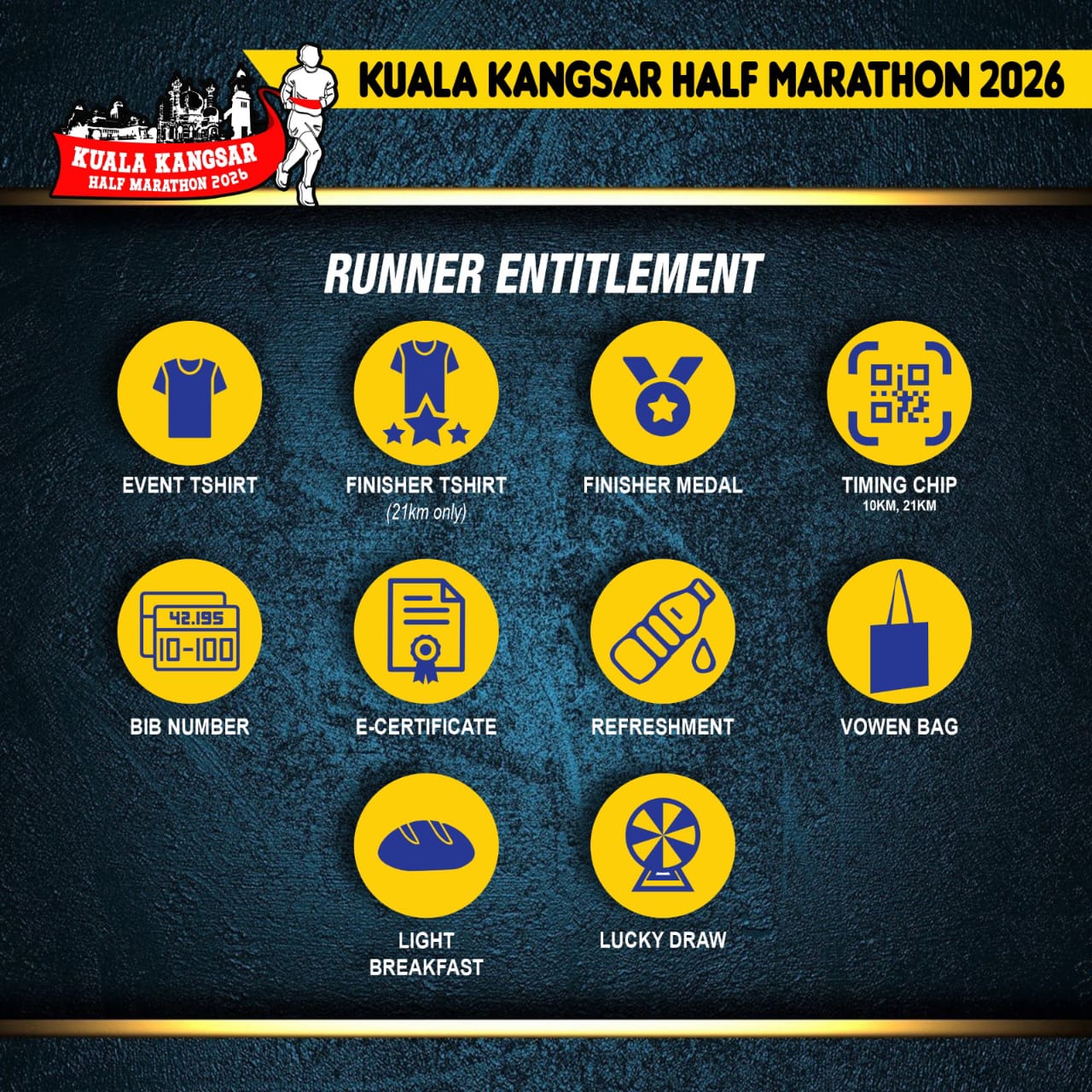 Hadiah cabutan bertuah akan diadakan untuk menggalakkan lebih ramai warga sekitar untuk melibatkan diri dalam Kuala Kangsar Half Marathon 2026 ini.