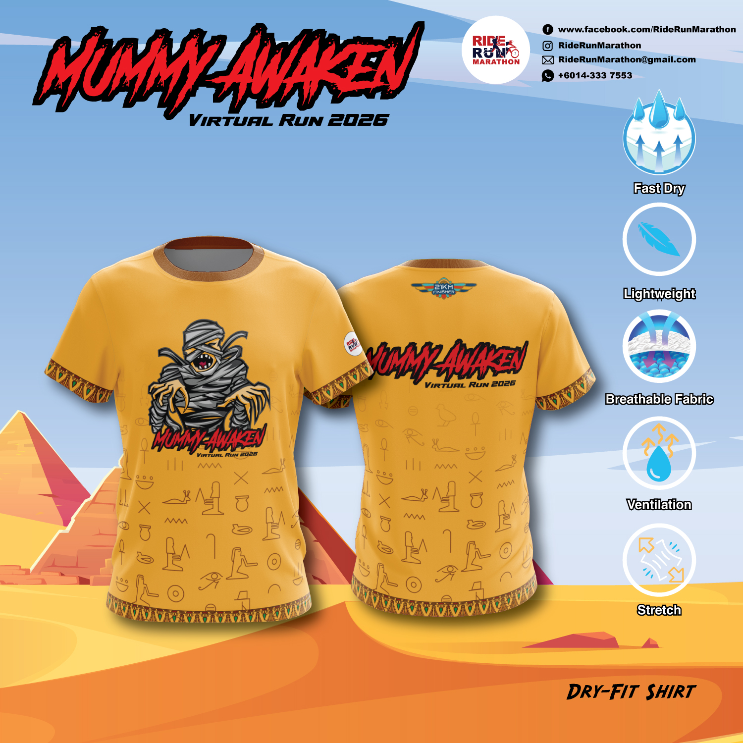 2) Mummy Awaken Virtual Run 2026 Dri-fit Finisher Tshirt (Distance Printed)