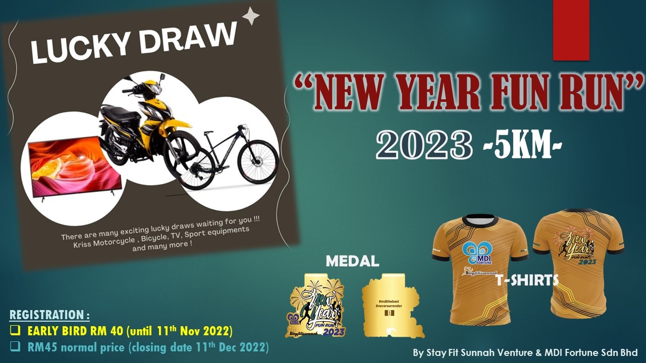 NEW YEAR FUN RUN 2023 registration is now open and the closing date is on the 11 Disember 2022.
