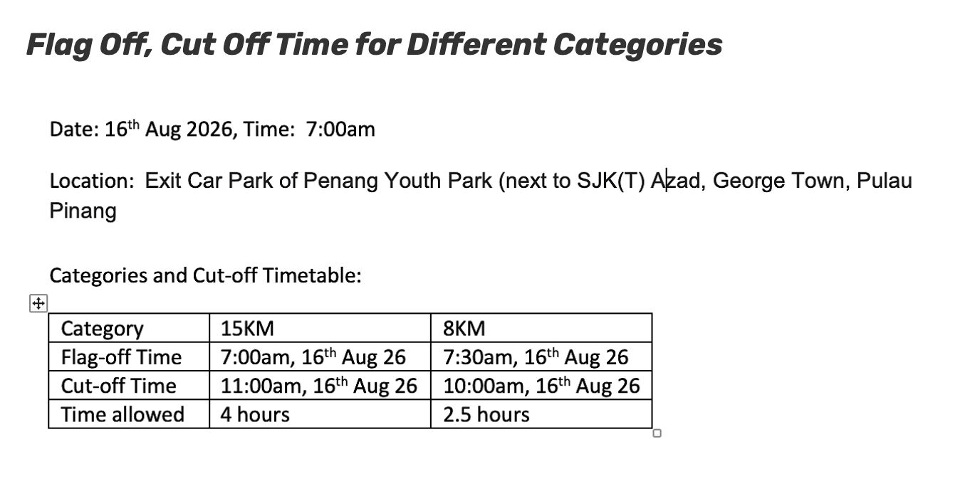 Starting from Penang Youth Park, the new 15km and 8km routes (with some changes to 2024's route) will take the participants onto a run into the Penang Hill Biosphere Reserve.