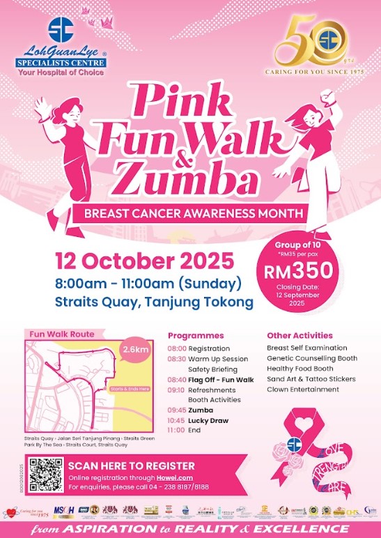 Pink Fun Walk & Zumba 2025 - Breast Cancer Awareness Month registration is now open and the closing date is on the 12 September 2025 and is limited to 200 slots only.