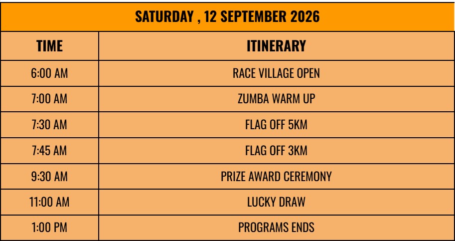 - Cabutan bertuah akan dijalankan secara langsung di lokasi acara selepas larian tamat.