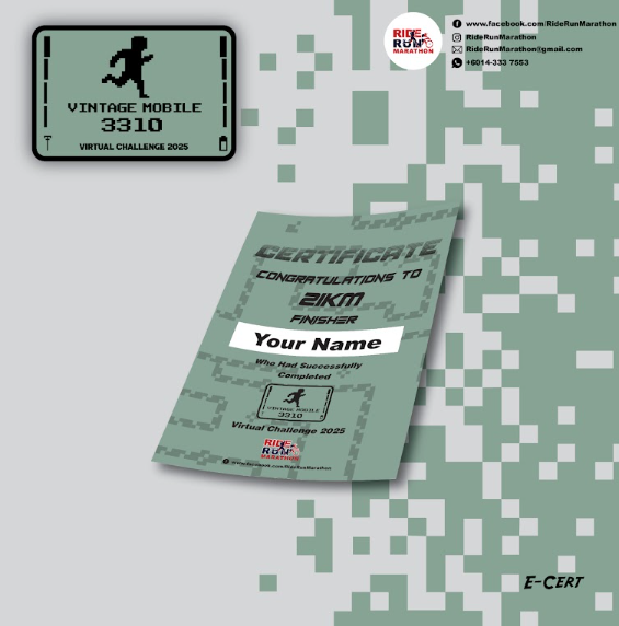 3) Vintage Mobile 3310 Virtual Run 2025 E-CertificateQ: When and where do I run/ride?