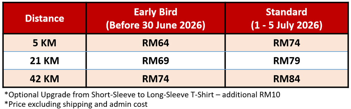 2. Dry-fit Finisher Shirt (Option to upgrade from short sleeve to long sleeve T-Shirt for all categories - add RM10)