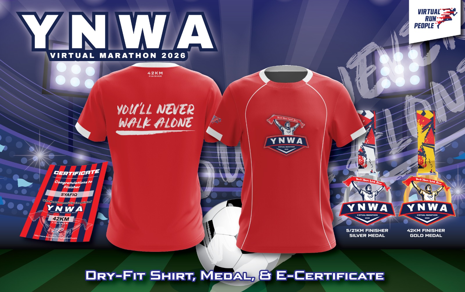 YNWA Virtual Marathon 2026 is organised by the Virtual Run People and it is open to participants with a valid mailing address in Malaysia and Singapore. For participants outside these regions, please contact us by email - YNWA@virtualrunpeople.com or WhatsApp us at +6016-380 7200.